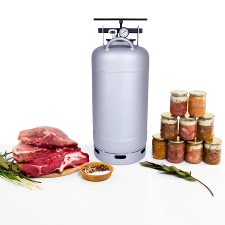 Универсальный автоклав с зажимами от срыва крышек. Не требует преднакачки. Для готовки впрок и на каждый день.